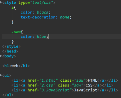 클래스 "saw" 로 묶고 클래스는 . 을 붙여준다. saw 앞에 . 을 붙이는 순간 이 선택자는 웹페이지에서 class 가 "saw" 인 모든 태그를 가리키는 선택자가 된다. 그 선택자를 선택받고 있는 것들은 파란색으로 바뀐다.
