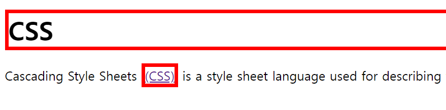 <h1> 태그가 화면 전체를 쓰고 있음을 알 수 있습니다. 이제 <a태그> 를 한번 달아보겠습니다.