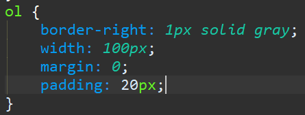 오른쪽 끝에 세로줄이 생성된 것을 확인 할 수 있다. <ol> 태그는 화면 전체를 쓰는 블록 레벨 엘리먼트 이기 때문에 오른쪽 끝에 생기는 것이다. 이럴땐 width값을 지정해서 <ol>태그의 크기를 지정하면 된다.