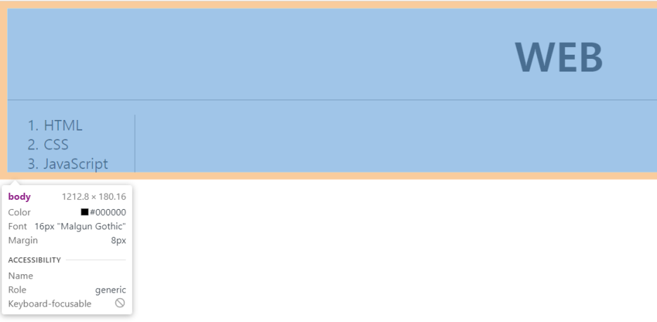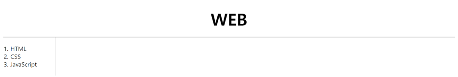 밑줄을 긋기 위해선 테두리를 사용하면 되며 , 그 테두리는 <h1>WEB</h1> 태그에 주면 된다. 그런데 지금 필요한것은 아래쪽 테두리 이므로 border 대신 border-bottom을 쓰면 된다.