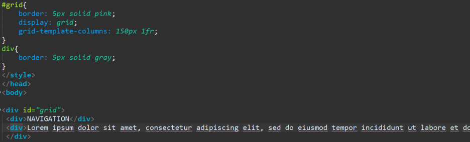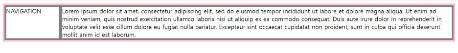 보다시피 텍스트가 많아짐에 따라 자동으로 칼럼이 커지고 왼쪽에 있는 NAVIGATION 을 감싸는 태그도 자동으로 커지는 모습을 볼 수 있다. 이것이 바로 그리드 이다.