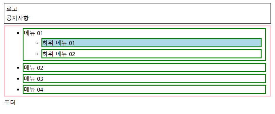 'li'들의 표가 초록색 실선으로 선굵기가 3px