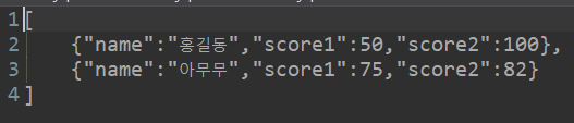 object 타입의 name, score1, score2 를 차곡차곡 담는다 .