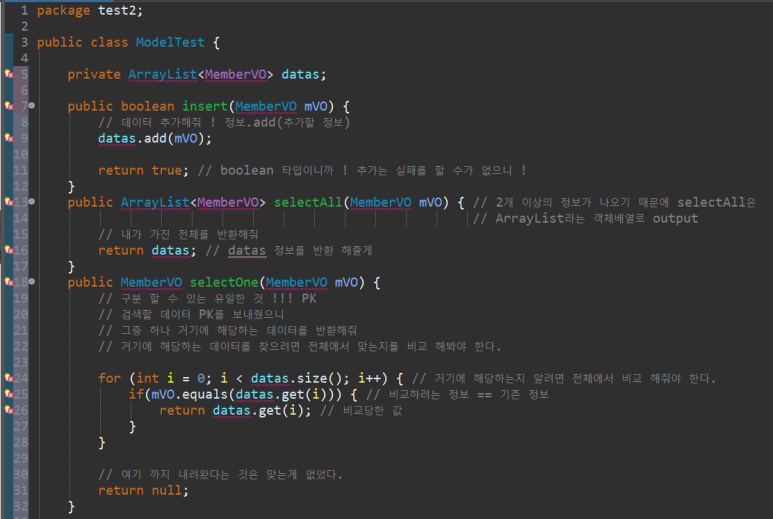 - selectOne - 오직 하나 이기 때문에 MemberVO