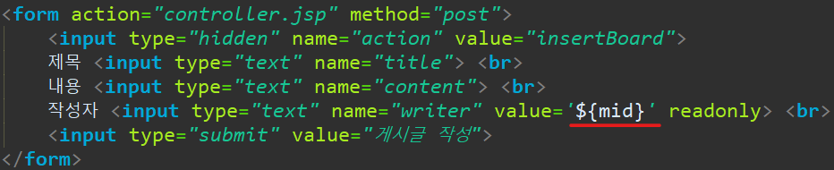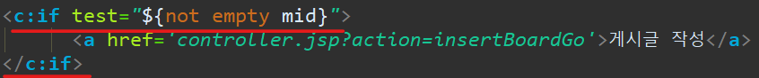 mid 가 not null 일 때 즉, 로그인을 유지 하고 있을때 게시글 작성 링크가 보이게 된다.