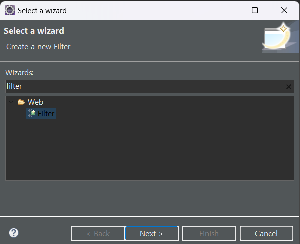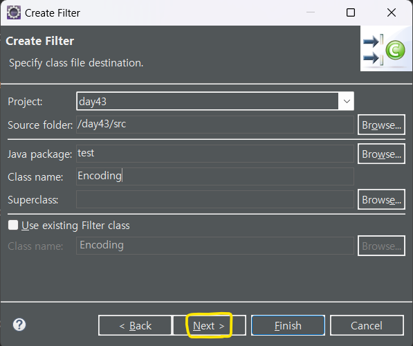 인코딩 필터로 이동하게 되는데 인코딩 필터는 java 클래스 이므로 java 폴더에 만든다.