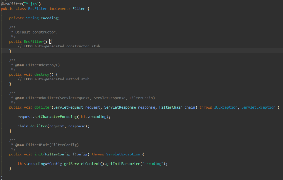 doFilter에서 실행시켜줘 내 인코딩(init에서 담은 this.encoding)을. 그리고 destroy() 연결 해제