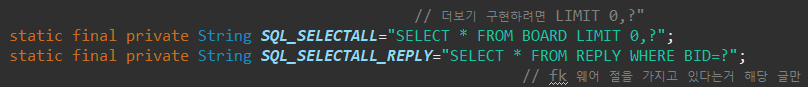 2. 게시글에서 댓글 하나 불러오면 여러개 대댓글도 달려야하니까 ReplyDAO도 BoardSetDAO에서 selectAll