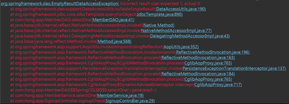 Spring JDBC를 이용해서 데이터를 불러 올 때, 일어나는 오류