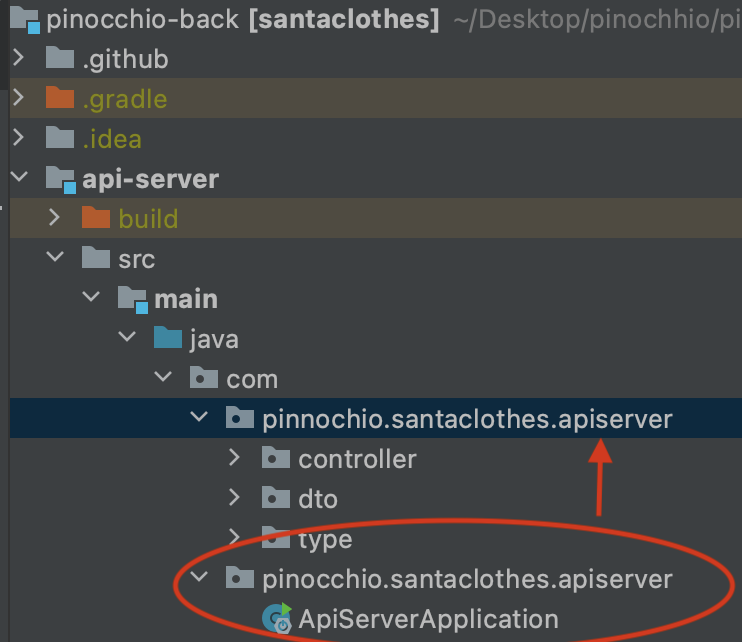 com 에서 다른 패키지가 아니라 pinnochio.santaclothes.apiserver 이 패키지 안으로