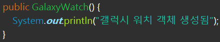 watch는 갤럭시워치의 "gw" -> 갤럭시 워치 "gw" 의 기본 생성자가 호출된다.