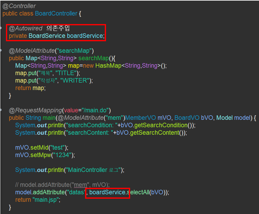 main.do 하려면 BoardService가 있어야해 있어 ? 어 있어