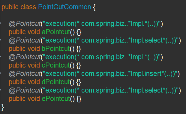 @Before("PointCutCommon.aPointcut()")