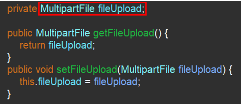 타입을 multipart file 로 해주면 된다. getter setter 만들기