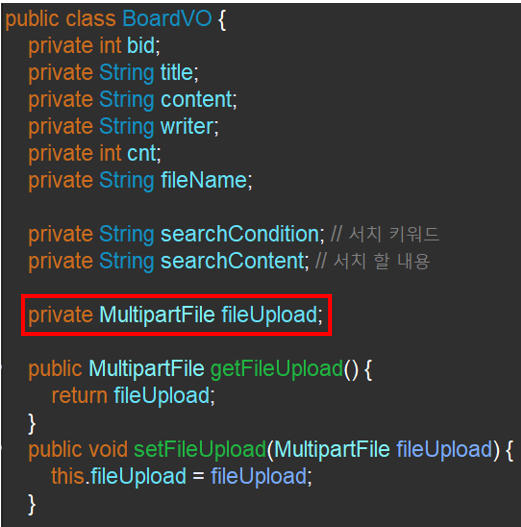 bVO.getFileUpload() 를 하면 이게 파일 그 자체를 의미