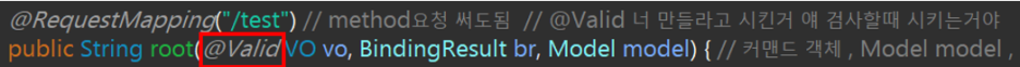 public String root(@Valid VO vo, BindingResult br, Model model) { // 커맨드 객체 , Model model , 에러친구 커맨드 객체로 받아올 수 있게