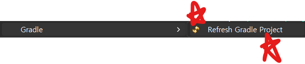 gradle에 추가 하였으면 Refresh Gradle 은 무조건 눌러주기 !! (새로고침 같은 기능 )