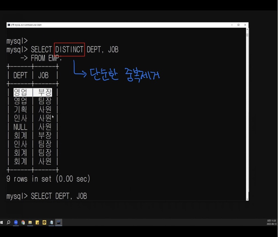 그래서 항목만 같고 연봉등을 출력하면 결과는 달라질수 있다.
