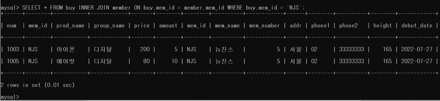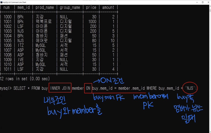 ON <조인 조건> [WHERE 검색조건] ---> where은 생략 할 수도 있다.