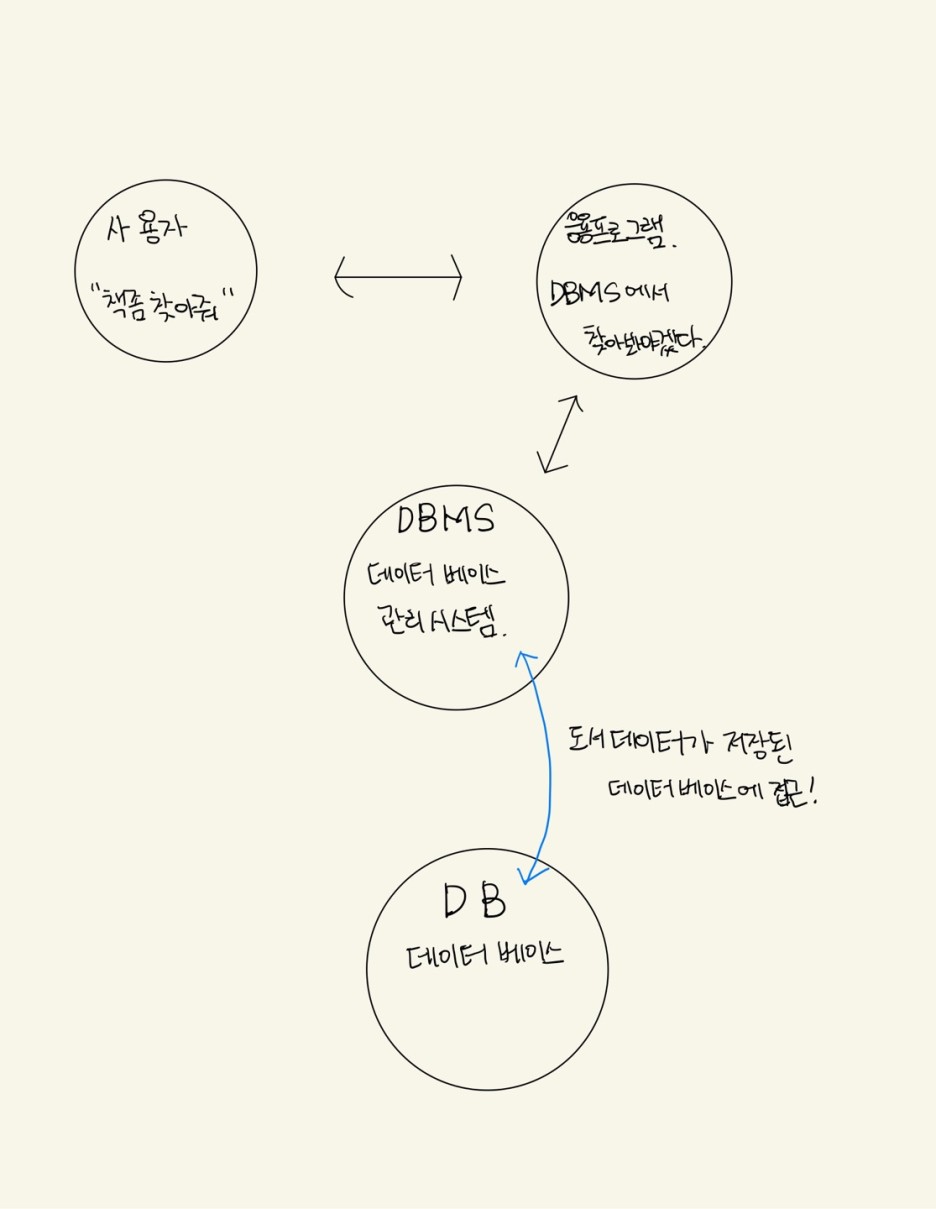데이터베이스에 데이터를 저장하거나 삭제하는 모든 작업은 데이터 베이스 관리 시스템을 거쳐야한다.